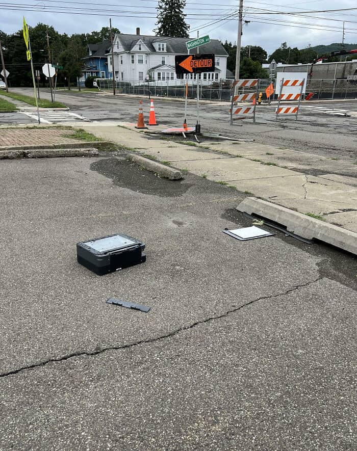 I’ve been pushing to have this back area paved for years, but no. Bosses say it’s not a priority and put diamond plating down instead. Myself and another coworker have been trying to yank it out from different angles, but it’s just getting worse. I’m about ready to just go home and leave it here.