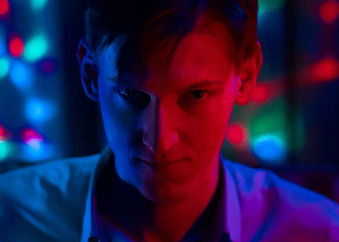 He had a gang symbol tattooed between his eyes, his eyes looked strange, like he was out of it, & his facial expression looked angry/ frustrated.