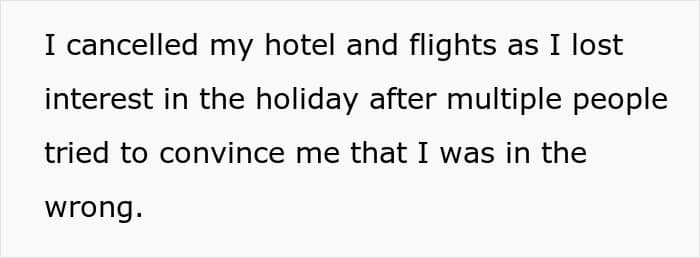 The woman doesn’t want to babysit on vacation, so she cancels her trip and is accused of “ruining the holiday”