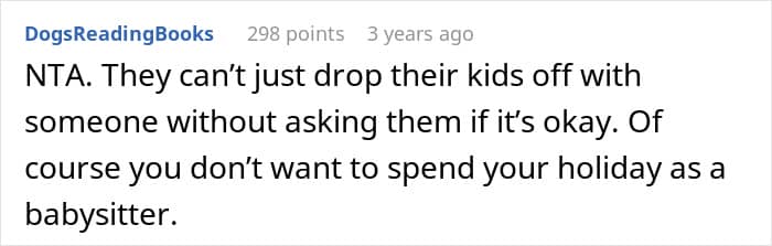 One Redditor decided to cancel her holiday after finding out her relatives were trying to trick her into babysitting their kids for 2 weeks while they enjoyed their vacation. Oh, fun!