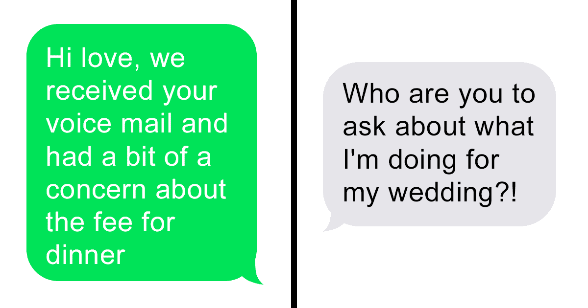 Well, this is exactly what happened to one anonymous guest who “received the most beautiful wedding invitation and responded well before the deadline with our choice for dinner and space for two.” The author wrote that a couple of days later, they received a follow-up voice message thanking them for responding and asking them to pay $75 per food per person.