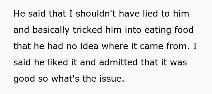 Well, we’re curious to hear your thoughts on this matter below. Do you think the woman’s actions are justified and the man acted inappropriately? Or was she wrong to use deceit and trick her husband into trying her food, something he has refused to do for years? Feel free to share your thoughts with us in the comments!