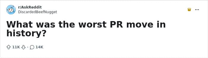 Reddit users shared what they consider the worst PR moves in history, and one thing is clear: some mistakes are simply too big to forget, no matter how badly someone wishes they could. Take a look below.