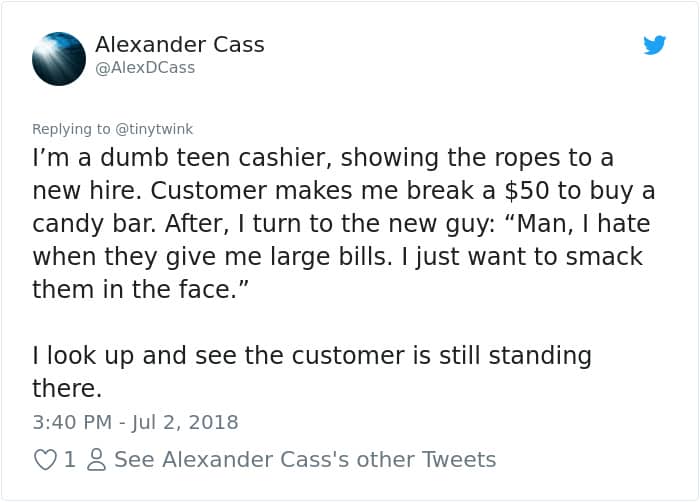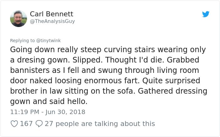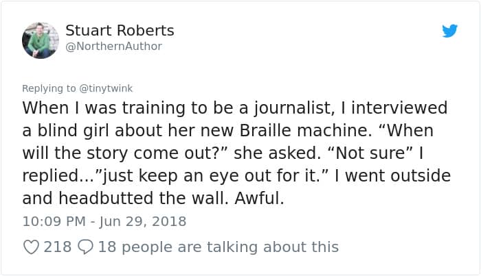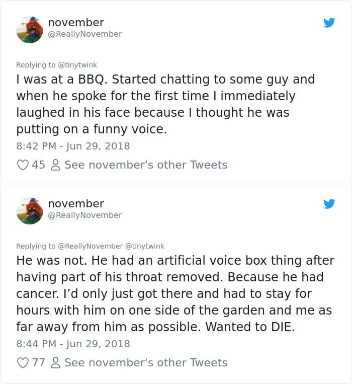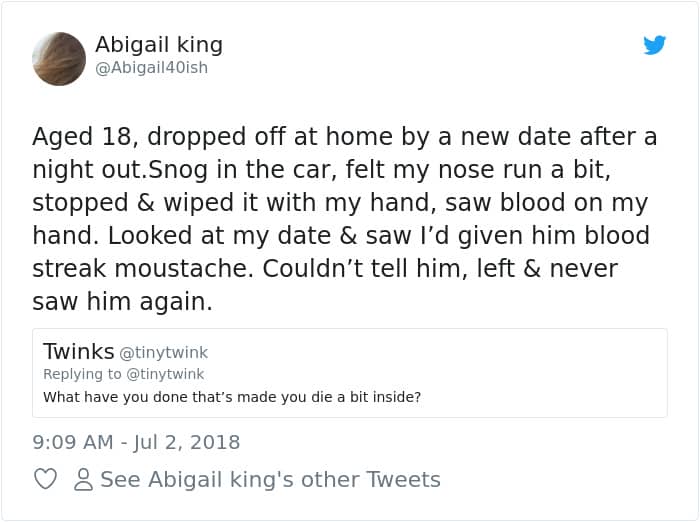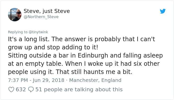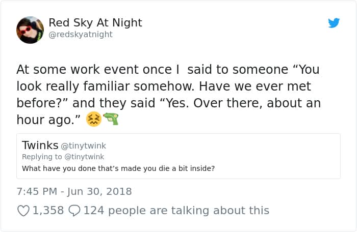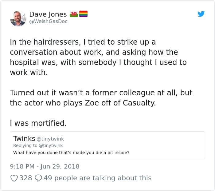 There’s no better way to face and deal with your mistakes than immortalizing them on the internet. Recently, one Twitter user has shared an embarrassing moment from their lives, “I once accidentally licked my fit Dentist’s hand whilst maintaining eye contact.” In return for the hilarious confession, they asked others to reveal the thing’s they’ve done that made them die a bit inside. Naturally, when someone leads by example, many follow. The people have been delivering such funny and cringy responses, they will definitely make you feel less of a complete fool yourself. Scroll down to check them out and upvote your favorites.(Cover image: Franco Folini I Facebook cover image:abbeyprivate)